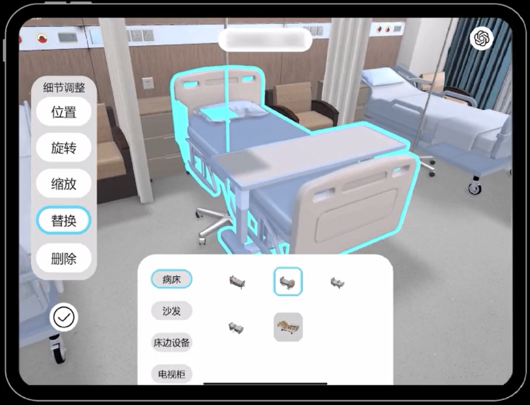 通過在虛擬樣板間中自由選擇或替換醫(yī)療設(shè)備、護理設(shè)施、建筑材料等各類構(gòu)件,系統(tǒng)將自動實時地生成報價單,使業(yè)主方和設(shè)計師即時看到設(shè)計調(diào)整帶來的成本變化,從而在規(guī)劃階段高效地優(yōu)化方案,實現(xiàn)成本可控。這一功能尤其適用于醫(yī)養(yǎng)建筑中設(shè)備和設(shè)施種類繁多、配置復(fù)雜的場景。